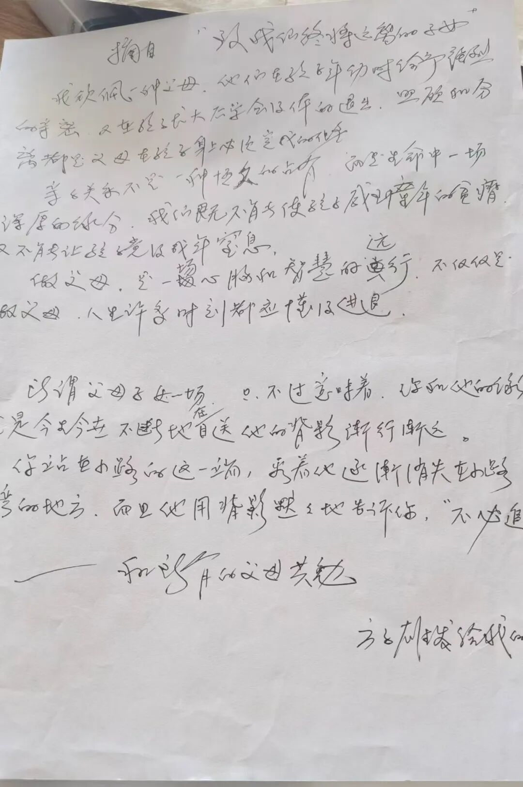 (附上父亲手写的一张便笺。我弟弟在国外,母年去世,当时弟弟问父亲是否愿意跟他一起生活,父亲当时拒绝了。这张便笺,估计也是他抄录下来的想法。)